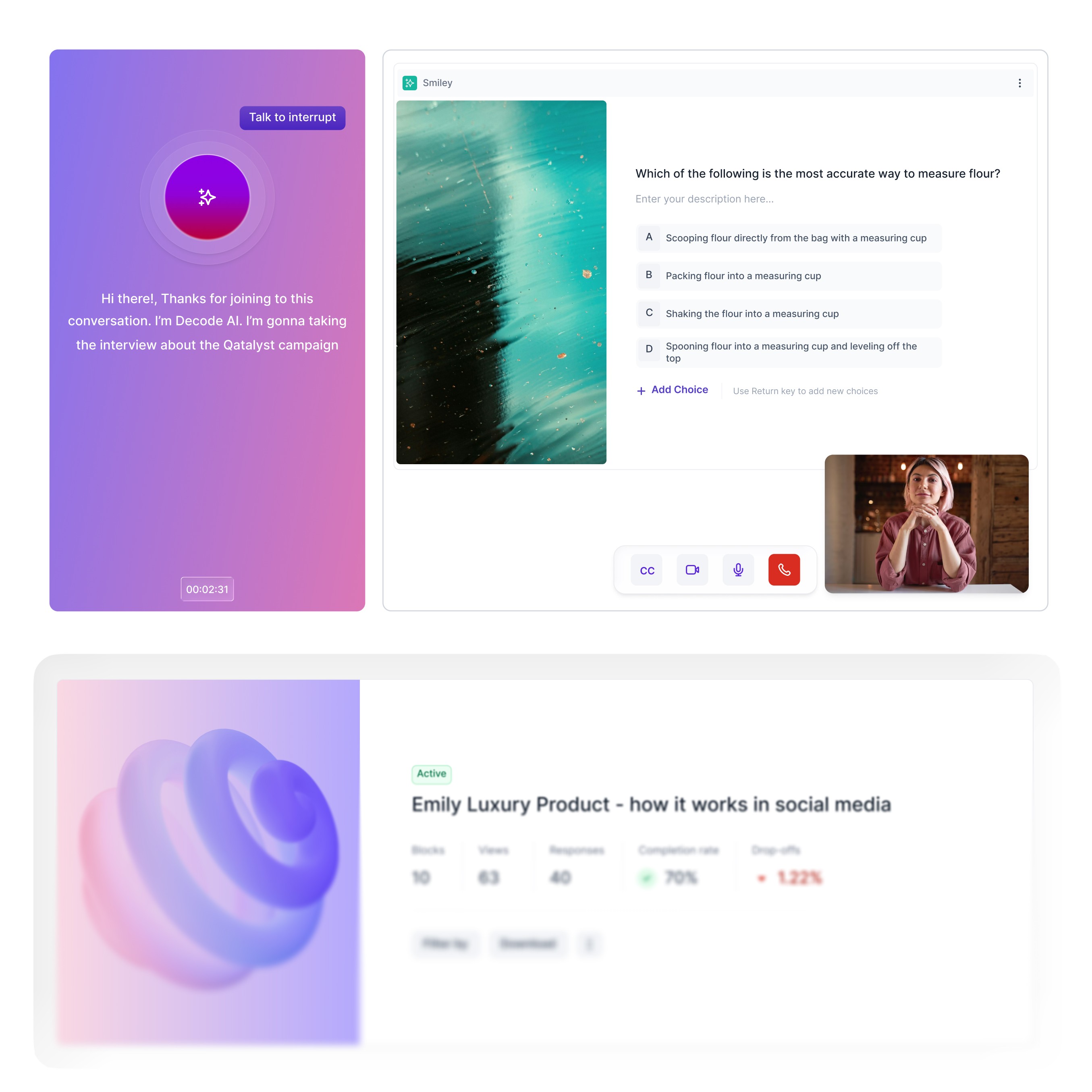 AI moderated qualitative interviews that adapt in real time and deliver structured insights instantly