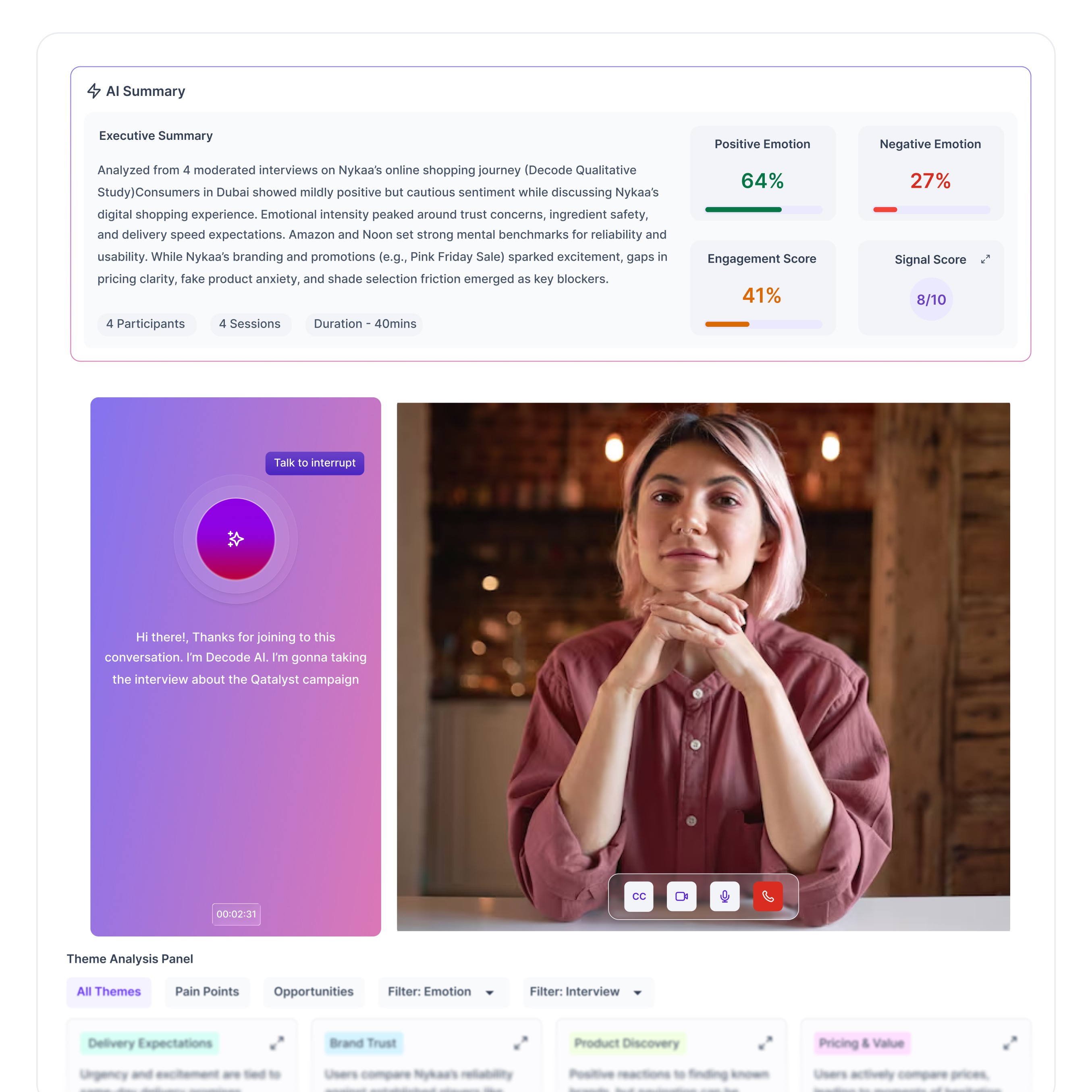 Decode AI Moderator is part of the Entropik Decode platform, built to help teams scale qualitative research without compromising depth or rigor.