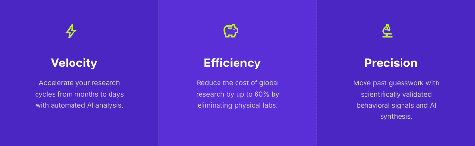 Traditional user research takes weeks, while our engineering teams ship updates every 48 hours. Our automated recruitment and AI- powered tagging deliver board- ready insights in less than a day.