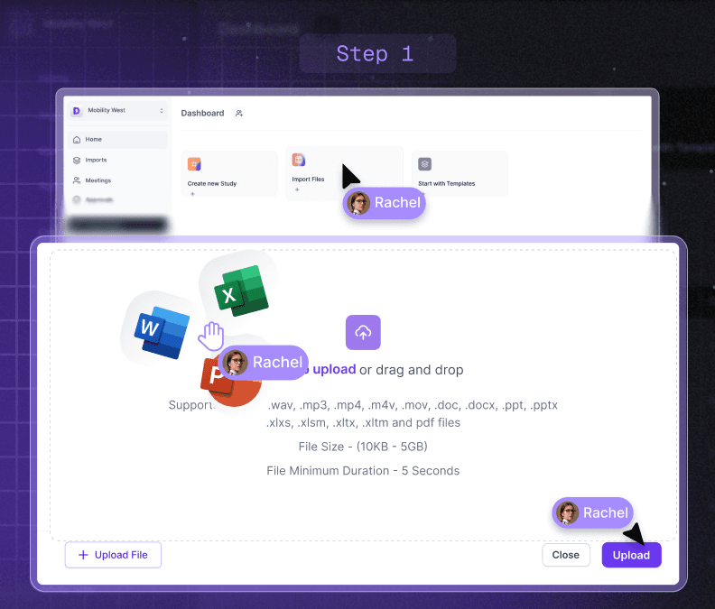 Upload videos, transcripts, survey responses, and notes. AI auto transcribes, translates, and structures your data into searchable insights, ready for deeper analysis.