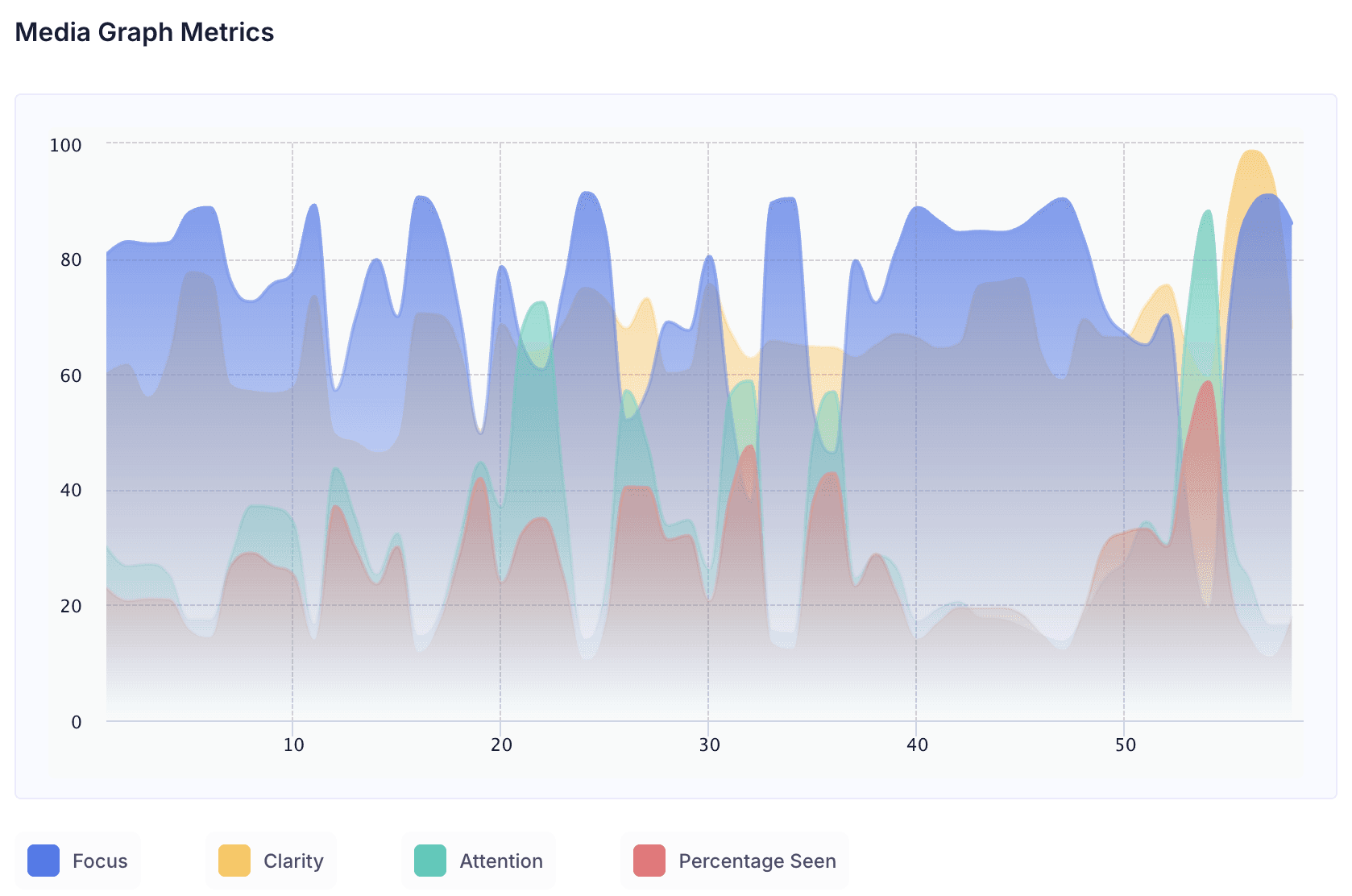 Attention spikes when the most visually surprising moment appears near the end of the ad.